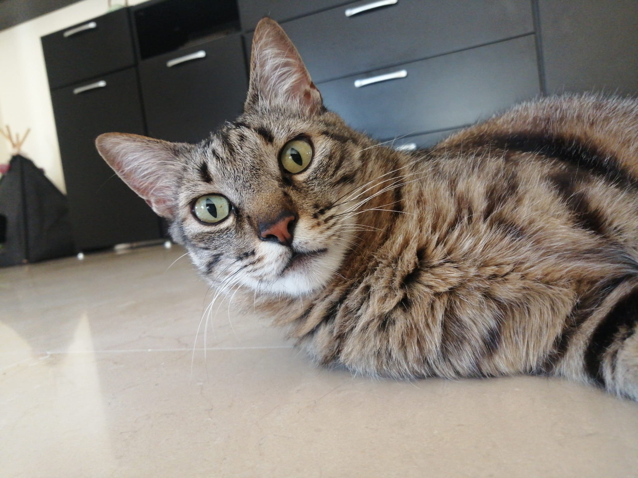 Ando agobiada por el calor y de pronto se me ocurre hacer lo mismo que hace mi gato, gran maestro del instinto y de lo cotidiano. Me tumbo desnuda en el suelo que, aunque duro, está fresco. Busco una postura en la que poder abrirme lo más posible y me relajo, el tiempo que puedo, antes de que comiencen a resentirse mis huesos.